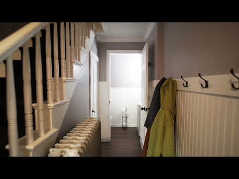 Beautiful 1900's home recently remodeled. In the back yard you find a large deck and fenced in yard that has a charming 14x16 building for outdoor accessories. As you walk in this home you first meet a large living area that has a heat pump. The new kitchen is adorable and has a large walk in pantry with cabinets and open shelving. Enjoy the small coffee bar alongside of the pantry. The new dark wood flooring throughout the downstairs gives this a nice rich look. Moving from the kitchen to the front of the home is lovely bay windows in the dining area. The barn door leading to the front hall was built from the wood that once was on the floor. What a nice touch. A new 1/2 bath is right around the corner. The original staircase continues with the 1900 vision. 2-3 Bedrooms upstairs, one of the bedrooms would make a great office or craft room and the primary bedroom has a small walk in closet. The upstairs full bath has double sinks and lighted bath tub area with tile flooring. In the basement you see the sewer line which has been replaced in 2024 and the boiler 2020 and hot water heater 2023. The roof was also replaced in 2023 so what else is needed. They have done it all.